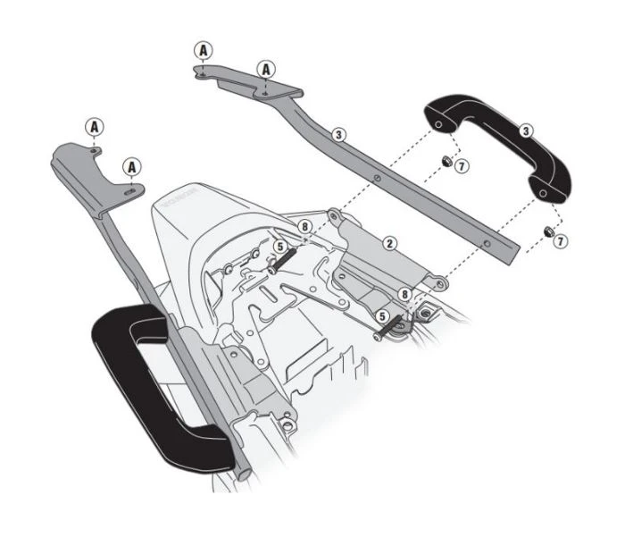 Adaptador posterior específico para maleta MONOKEY® o MONOLOCK®.NO CONTIENE PARRILLA. A combinar con las parrillas MONOKEY® M5, M7, M8A y M8B o las parrillas MONOLOCK® M5M y M6M / si se combina con M8A, M8B no permite la instalación de un kit de luz stop sobre la maleta y/o dispositivo de mando a distancia para la apertura de la maleta / Carga maxima 6 Kg.