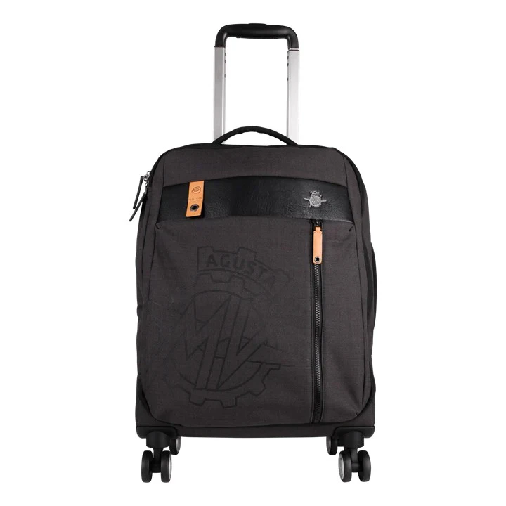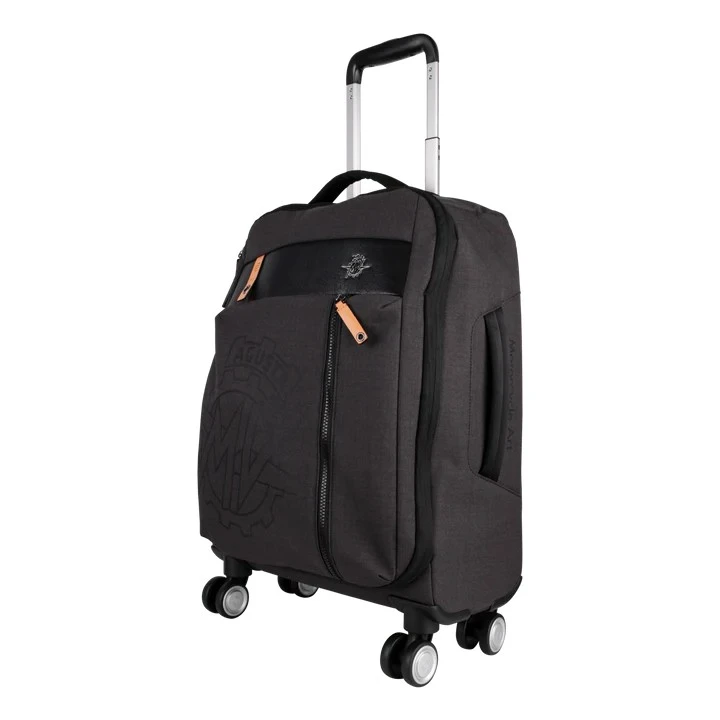 Presentamos la maleta de cabina MV Agusta Piquardo Veloce. Viaja de forma compacta y con estilo con esta maleta ultrafina de 4 ruedas, ideal para cabina, en color negro. Cuenta con un espacioso compartimento principal para guardar todas tus pertenencias y un bolsillo frontal de fácil acceso para tener tus objetos esenciales a mano. Personalizada con el logotipo de MV Agusta.