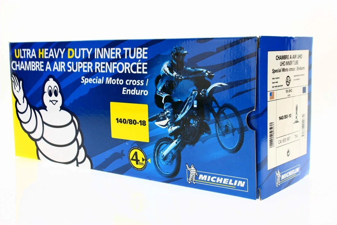 En las utilizaciones off-road, los neumáticos corren siempre alto riesgo de pinchazo. Michelin, ha creado una solución más económica que su bib mousse, y que también reduce considerablemente la posibilidad de pinchazo: las cámaras Michelin súper reforzadas UHD. Se trata de un producto destinado tanto a competición como a uso particular, y tiene 4 mm de espesor de pared, frente a los 2 mm de las cámaras estándar.